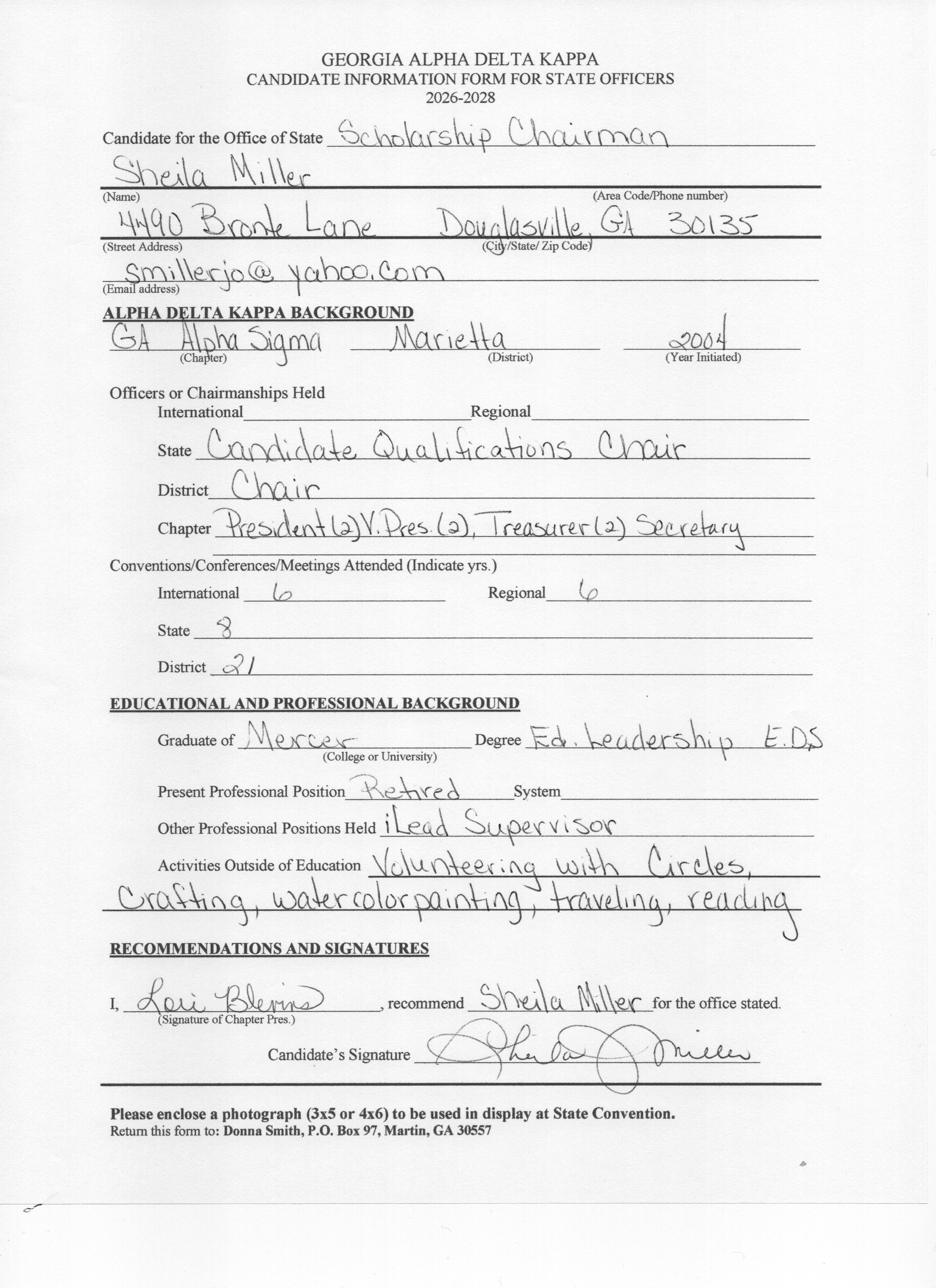 The following candiates have offered for a position on the GA State Executive Board for 2026-2028. Click on their names to read their information forms.